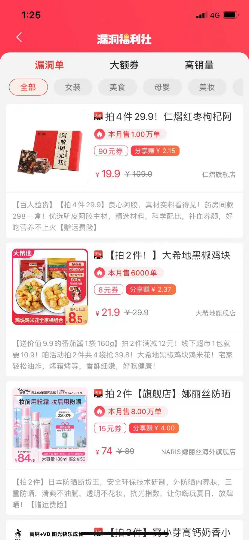 通过领取首单礼金,下单基本1分钱或1元钱,买到几块甚至几十的产品!