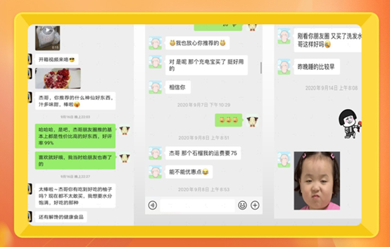 大家可以看下,这个学员和用户的关系相处起来比朋友还亲密,很多时候,除了会去跟着他的朋友圈的分享 去产生购买,更多的还会主动来追问,会有什么好东西会分享。